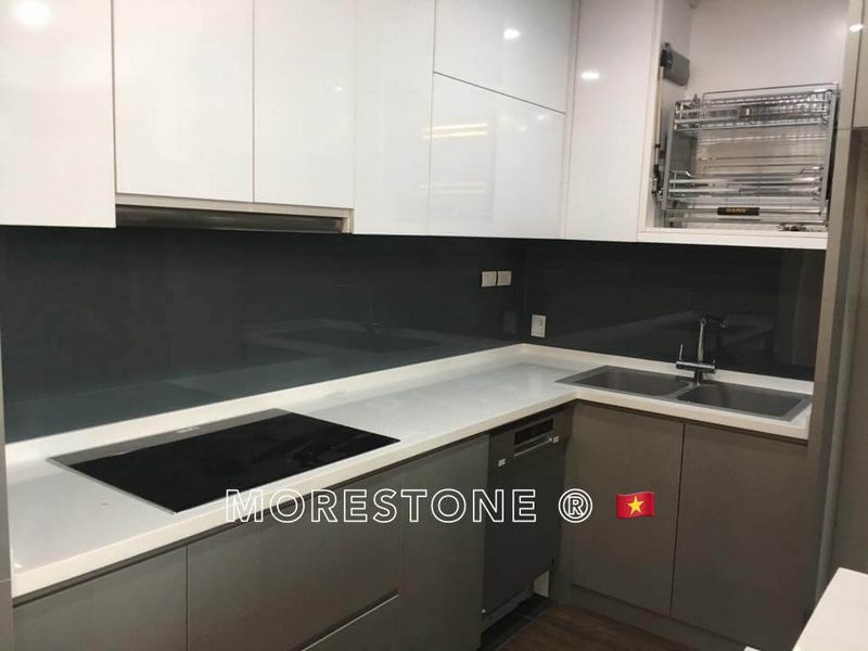 Mẫu đá ốp bếp Himacs trắng tinh tế làm cho bếp nhà phố, chung cư, biệt thự trở nên sang trọng hơn.